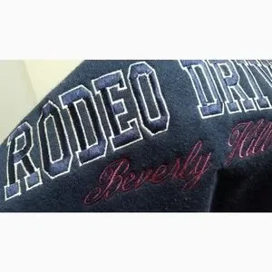 Vintage Eddie Bauer beautifully silk embroidered “ Rodeo Drive Beverly Hills “long sleeves crew neck dark blue sweatshirt .