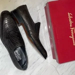 Brand new and unworn Salvatore Ferragamo men’s 100% python snakeskin “brisbane” loafers. Collector’s item. Size 13 B. Real python, not embossed. Includes dust bags. One of the shoe’s sole has a few scratches/tag residue.