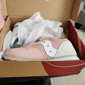New in Box Size 10 Pink and Cream, Gorgeous Suede, Comfy and easy velcor, stylish running shoe. My daughter's feet grew too fast during covid times and these were never worn sadly. These are no longer made/sold in this stlye they have a new style.