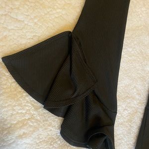 Womens Black TopShop Stretchy Ribbed Leggings Pants with Bell bottoms