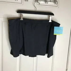 NWT Bal Harbour Women's Tummy Control Side Slit Swim Skirt Black ~ Size 2X
