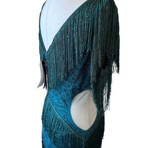 Embroidery Multi-Layered flapper style Tassel Dress in the deepest emerald green so perfect for holidays! NWT