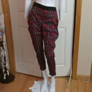 Plaid pants. Fit between a legging and a jogger, like a jogger that is tighter on the leg. The pockets in the back work! Very cute and comfortable, unfortunately I no longer fit in junior sizes!