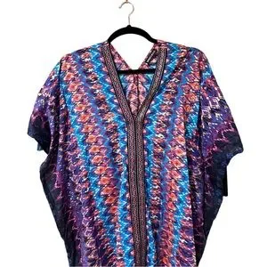 Miraclesuit Bella Alba Cotton Caftan Cover-Up in Midnight Blue (M)