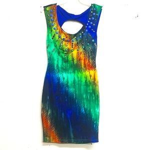 Size small beaded Multi colored fully lined sleeveless party dress