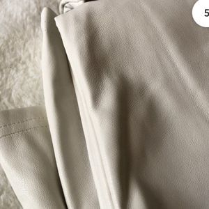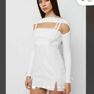 White Soft grey Vegan Leather buttersoft Mini Dress/overall skirt New with tags. Mini Dress Silhouette Twin Vegan Leather Adjustable Straps Faux Stitch Detailing Split Hem Invisible Zip Silver Manière De Voir Branded Plaque Fabric: 55% Polyester, 45% Shirt not included with dress UK8 = US6, but this one fits small more like a US4