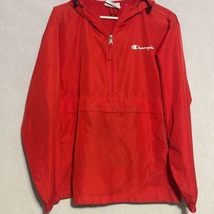 Champion Jacket Size small red FLAWED Little holes on bottom back see pics