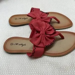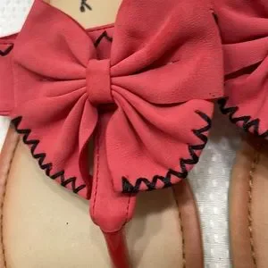 M Style Deep Salmon Fabric Bow Flat Sandals Size 9