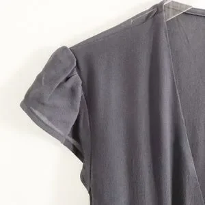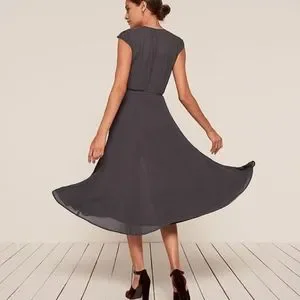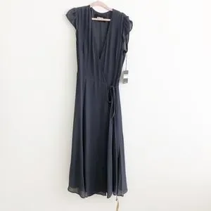 reformation • mollie blue indigo gray cap sleeve tie wrap midi fit flare dress