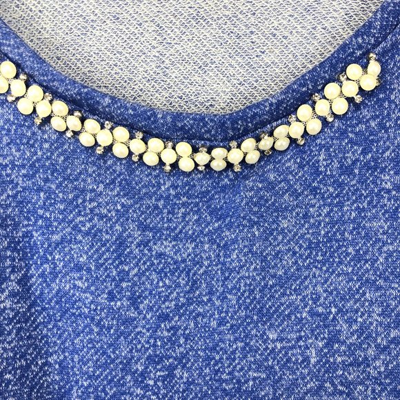 Very Pretty! Womens Size Large Blue Bling Pullover Soft Sweatshirt 3/4 Roll Cuff Sleeve.