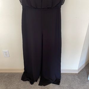 White House Black Market Lace Inset-Bodice Black Wide-Leg Jumpsuit