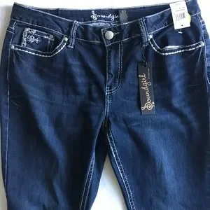 SoundGirl Size 16 Embellished Denim Jeans Fleur de lys Juniors Plus NEW