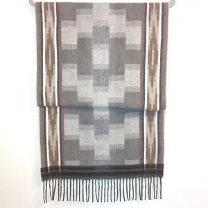 Vintage Cashmink V. Fraas Aztec Print Fringe Gray Winter Scarf