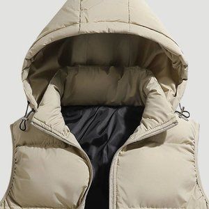 Khaki Casual Mens Drawstring Hooded Puffer Vest Coat