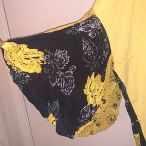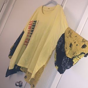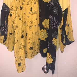 Free People Sun-kissed Tunic Top. Oversized fit with a sweatshirt-like front and billowing/loose boho sleeves and back panels. Scoop neck. Yellow and black. Very unique piece. High low hem. Relaxed fit. No size tag but due to the oversized structure, can fit most sizes. Excellent condition.