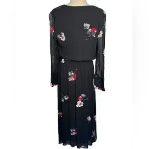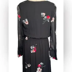 NWT Witchery Womens Dress Black Size 12 V-Neck Sheer Sleeves Maxi Red Flower