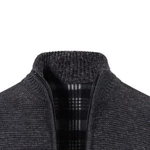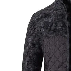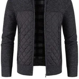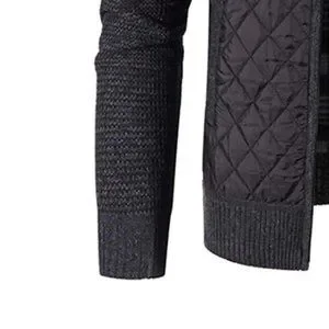 Black Preppy Mens High Neck Zip Up Contrast Quilted Panel Cardigan
