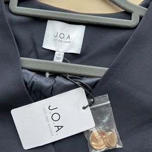 NWT - new never been worn. Dark navy color with gold color buttons. Fitted silhouette and polished, layered buttons, it's a sharp look guaranteed to bring out your inner lady boss. Lined. One button has popped off but original spare included. See photos for fit and style. Dark navy color, gold buttons.