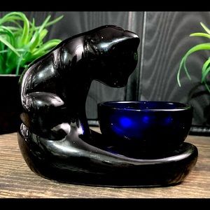 Vintage Haeger Style Black Cat | Gazing Bowl | Art Glass Cobalt Bowl