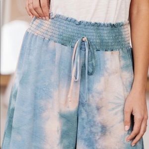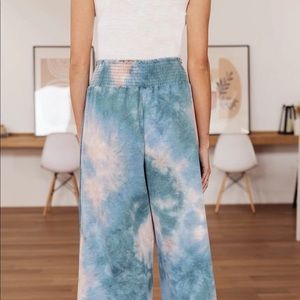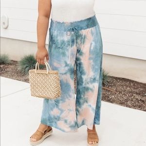 It's time to hit the beach. Do so in a playful style with these comfy Beachy Clean Wide Leg Trousers. Sporting a cute stretchy waistband and a fun decorative tie, these colorful trousers will become a new favorite. Pair them with a neutral graphic tee and sandals for an easy go to look.