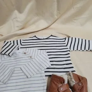 2 stripped long sleeve tees 1 is black stripped the other is grey stripped