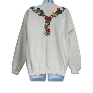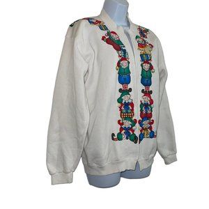 Vintage Hand Designed Cardigan Sweatshirt Womens M Christmas Holiday Well Worn