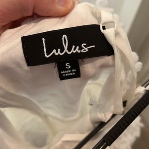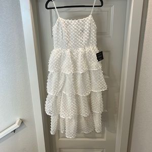 Lulus tiered pom pom midi dress, White, Size S
