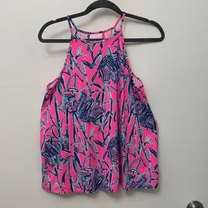 Lily Pulitzer pink Elephant Print Tank Top Lilly Lightweight Pima cotton blend with keyhole neckline. excellent condition
