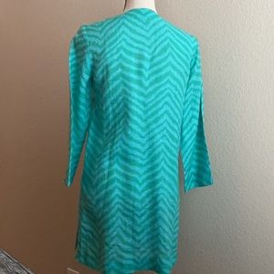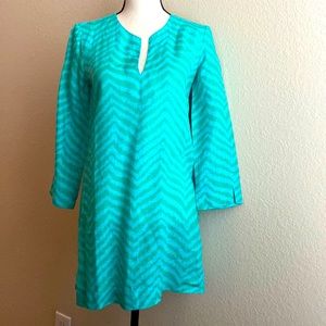 LILLY PULITZER GREEN AND BLUE CHEVRON LINEN LONG SLEEVE TUNIC COVERUP TOP
