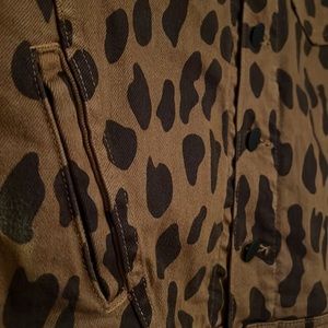 The jean jacket gets a spirited overhaul, painted with animal spots and cut with a cropped silhouette. Point collar. Long sleeves. Button front with logo stamped silicone textured black buttons. Chest patch pockets. Waist welt pockets. Machine wash. Cropped fit. Mint condition. 98% Cotton/ 2% Polyurethane. Should you have any questions, please do not hesitate to ask. Thank you for visiting my closet. 💐