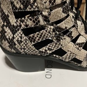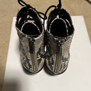 Cute snakeskin booties that zip up the back.