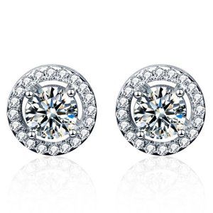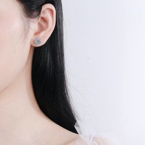 Certified 1ct. t.w. Moissanite Diamond Round Halo Stud Earrings NEW