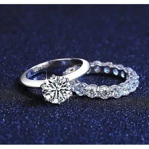 Certified 2ct. t.w. Moissanite Diamond Wedding Ring Set NEW