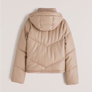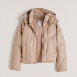 NWT Abercrombie & Fitch Vegan Leather Crop Puffer Jacket Beige M