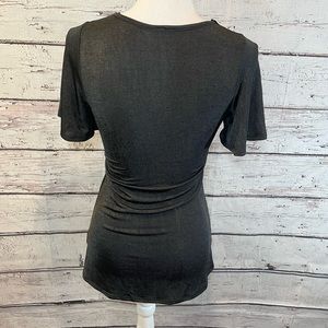 YOYO 5 Shimmery Black Drape Front Short Sleeve Blouse w Embellished Neckline-M