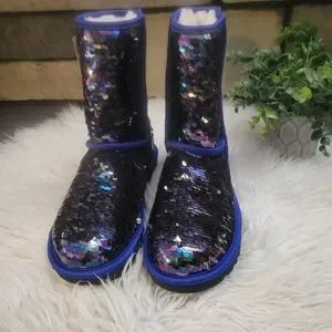 UGG Classic II Stellar Sequin "Blue/Multi" Classic Short Sequin Boots in Blue. Size 5 but can Size up in UGG