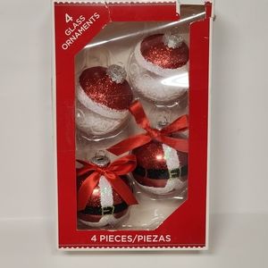 4 Glass Christmas Oranaments Holiday Time