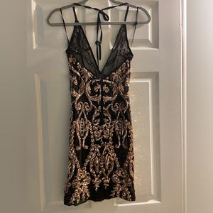 Beautiful Sheer Black Mini Dress with Gold Embelishment