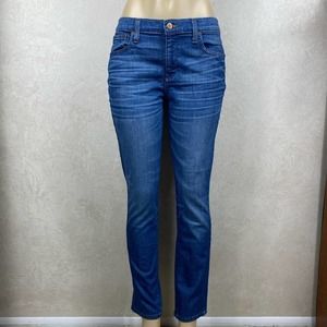 Slim broken in boyfriend jeans by J. Crew. Excellent used condition. No stains or marks. Manufacturer distressed.