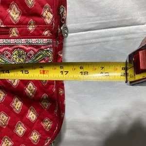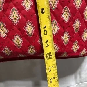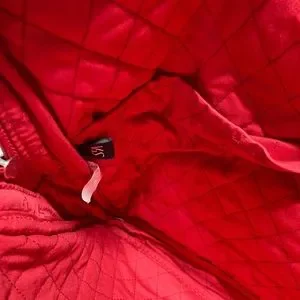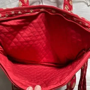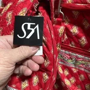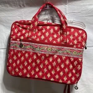 Great coordinated set in beautiful red color with gold accents. Laptop bag has 2 large zippered compartments with adjustable strap and the back pack is perfect for carrying your wallet and lunch. Great set.