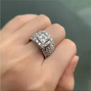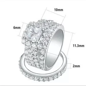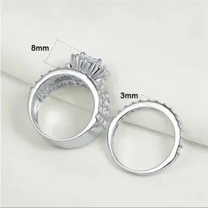 New 925 Silver 2 Pc Set Wedding Engagement Diamond Ring