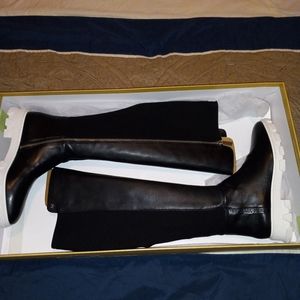 The Ridley boot combines classic equestrian style with of-the-moment appeal. Crafted from supple leather, it features a white rubber tread sole and side zip fastening for easy wear. Team this pair with everything from sharply tailored separates to the season’s printed dresses. Shaft height: 16"; Circumference: 14", Nappa Leather upper, 1" heel and Knee-high tall lug sole boot. Round-toe riding boots with inner ankle zipper closure. COLOR- BLACK/WHITE! REASONABLE OFFER ACCEPTED!!