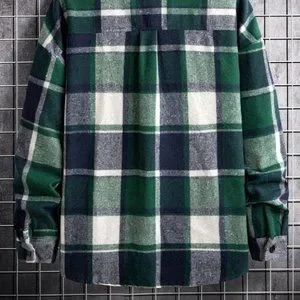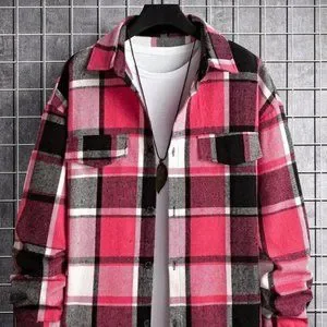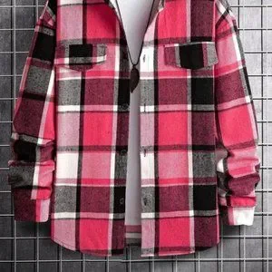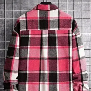 Pink And White Preppy Mens Plaid Flap Detail Drop Shoulder Overcoat