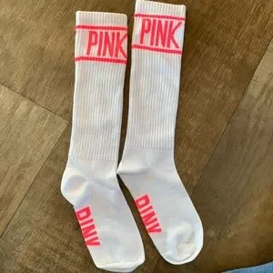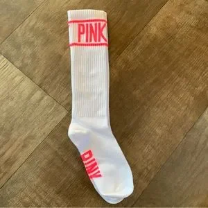 NWOT PINK crew socks hot pink and white