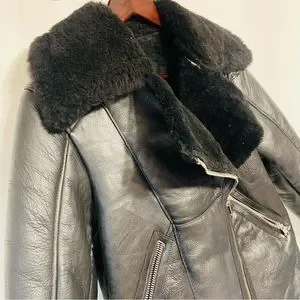 Black Leather Shearling Motorcycle Jacket Size Medium