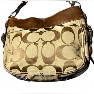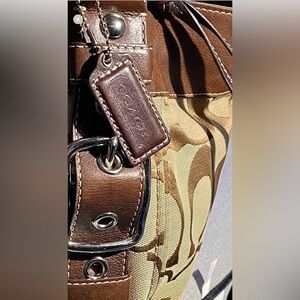 Vintage Coach Leather and Monogram Bag Gorgeous Silver zipper, connectors, o-rings, buckles and straps...Oh my!!