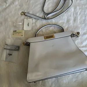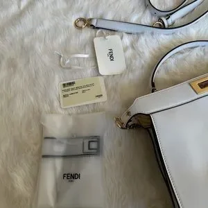 New PEEKABOO IseeU medium vit.seta/nappa stampa foulard barocco print inside comes with strap, rain coat, authentication card, dust bag. Never worn but there’s wrinkle on the leather, due to nature of the leather not did not wear the bag. All the sticky are still on the hardware.