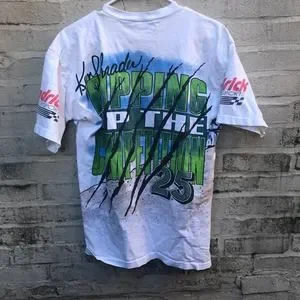 vintage 1994 nascar KODIAK TOBACCO ken schrader “Ripping Up The Competition” All over print AOP graphic tee shirt LARGE #25 (banned car)
