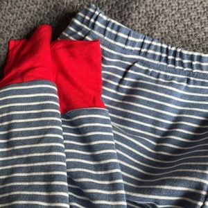 Adorable striped Jammie set for the holidays and everyday! Soft blue and white with red trim at neck, wrist and ankles. Size L. New from online boutique.