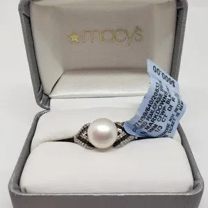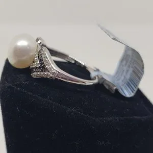 Cultured Pearl/Opaque Sterling Silver 9MM CFWP 1/3 CT Diamond Ring